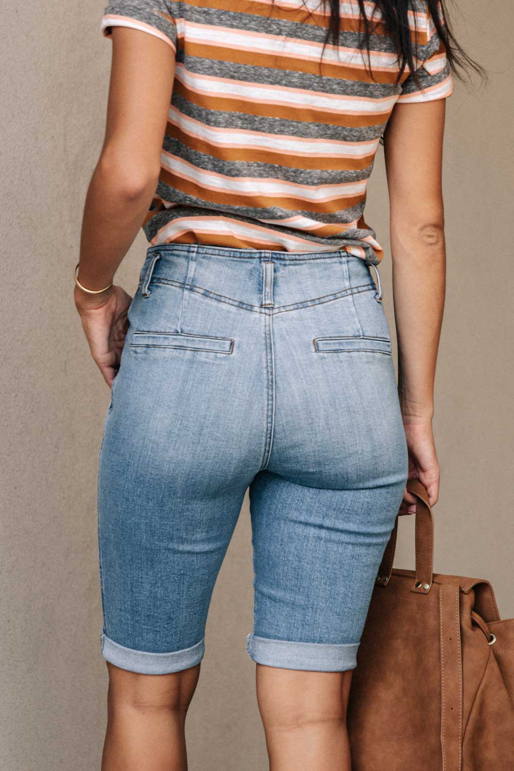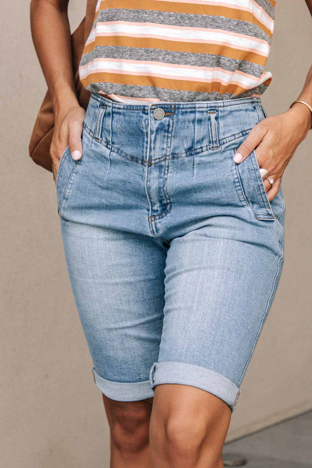 • Load image into Gallery viewer, Amina Light Wash Bermuda Shorts