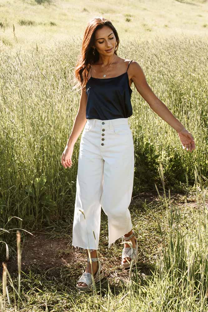 **Our online merchandise team measures each size by hand. For more specific information on the product, please feel free to live chat with a stylist.