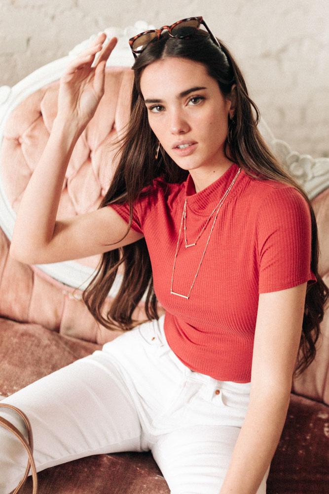The Annika Mock Neck Top is the perfect piece for everyday wear. With a mock neck and a ribbed material, this piece is easy to pair with almost any pair of bottoms.