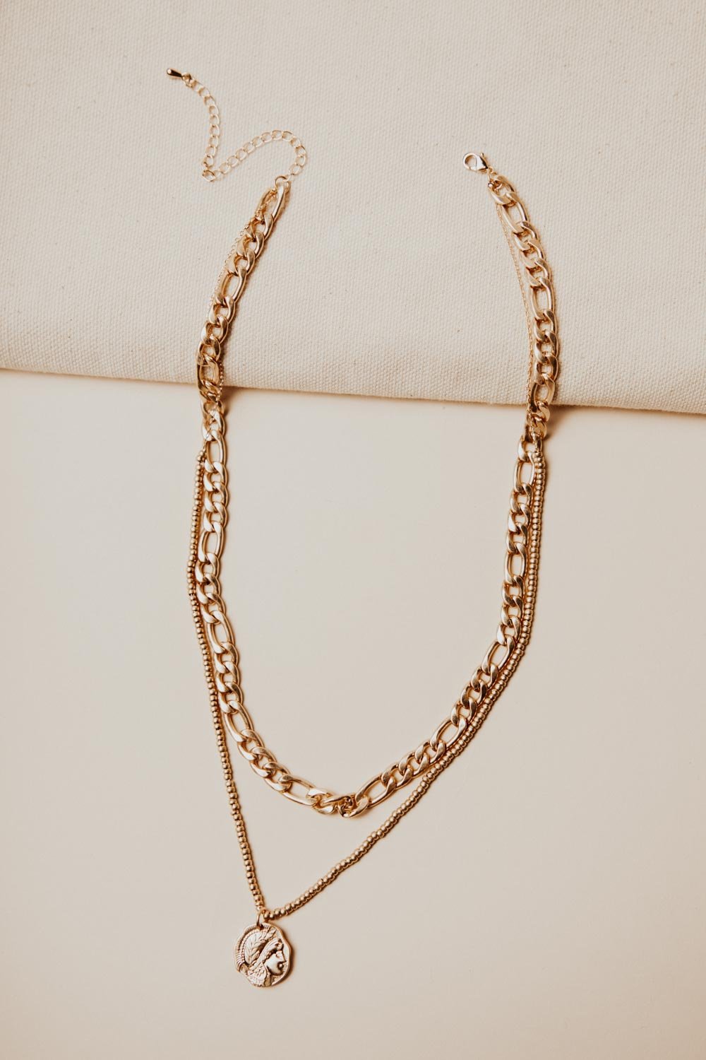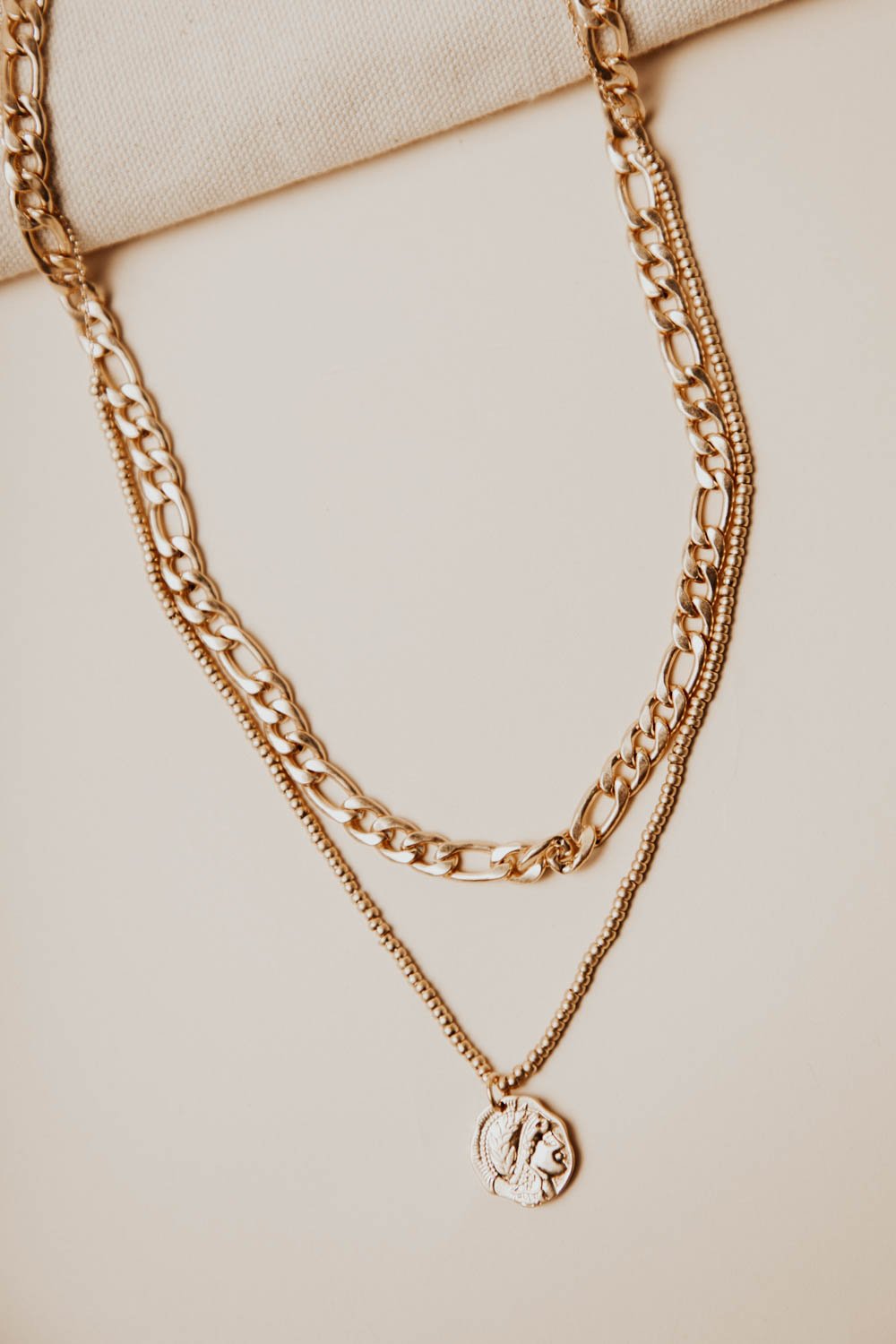 Beaded Gold Coin Chain Necklace