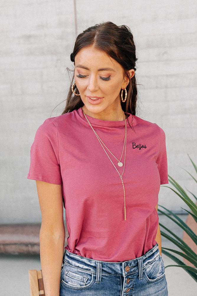 - Cropped baby tee. This tee runs small. The size large fits like a size small boyfriend tee.