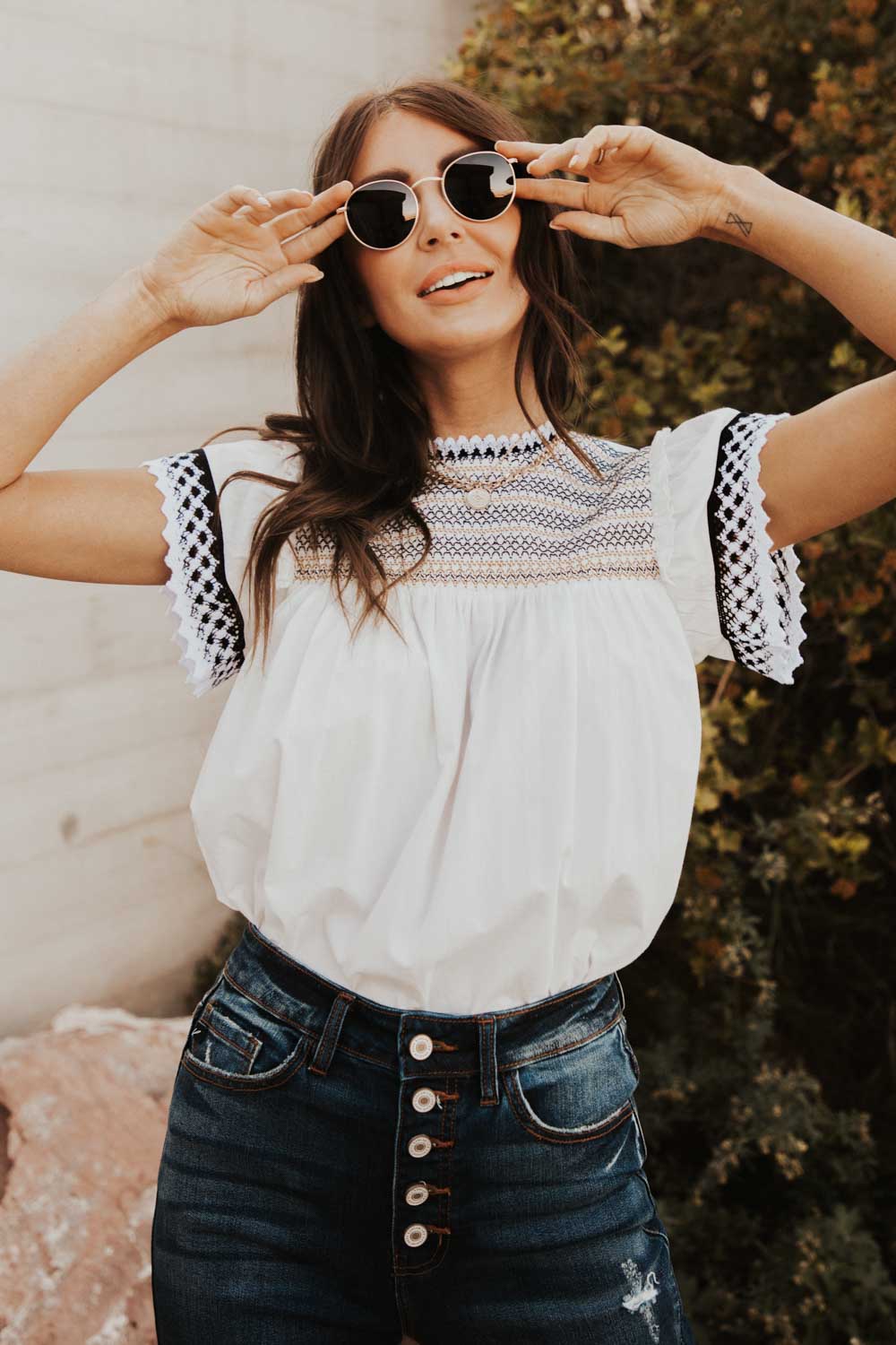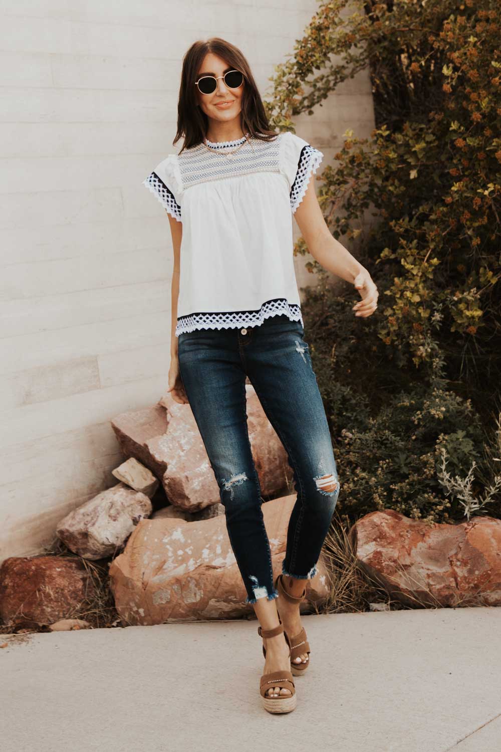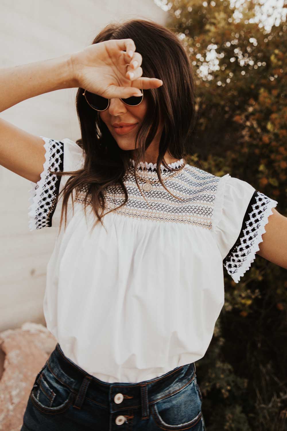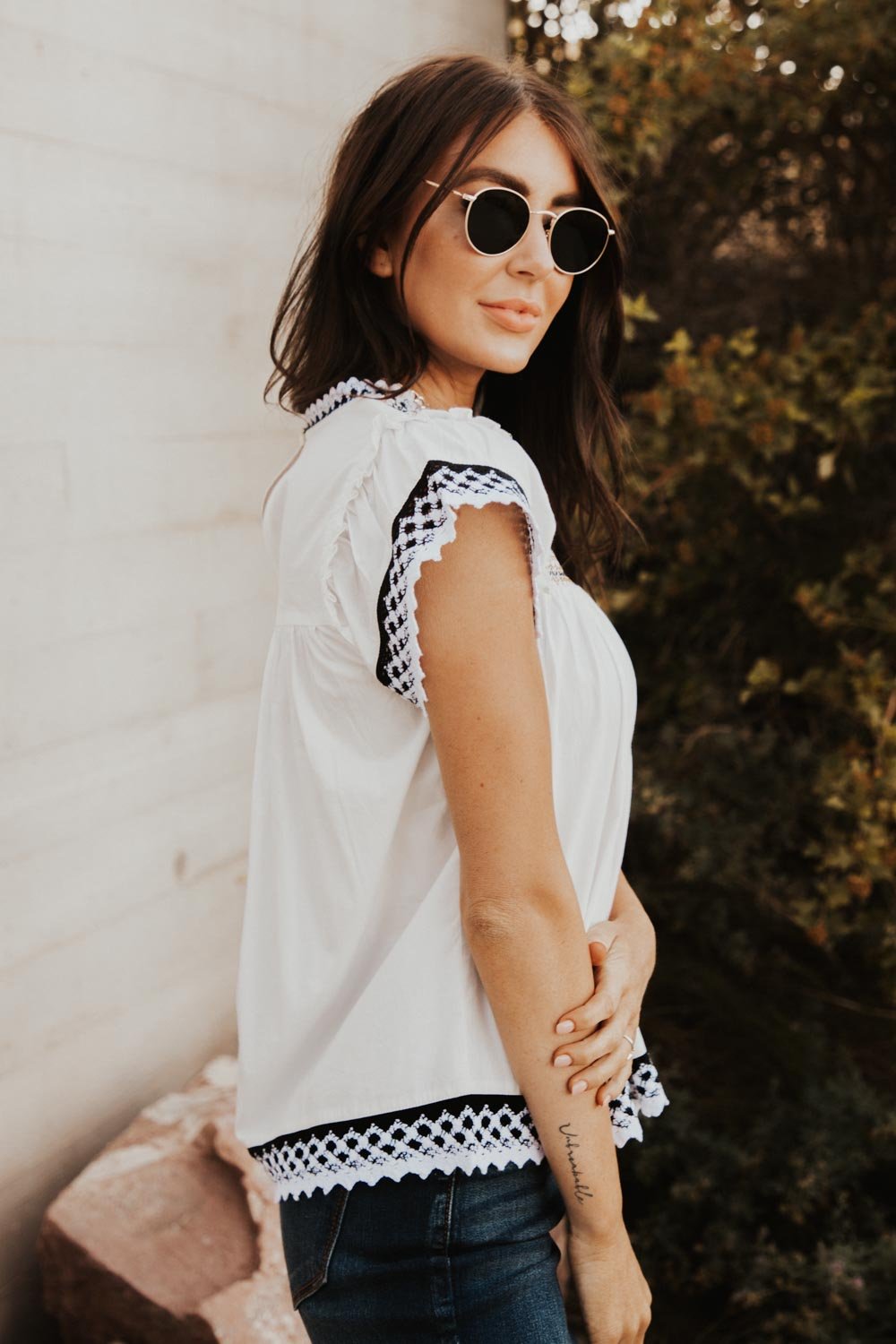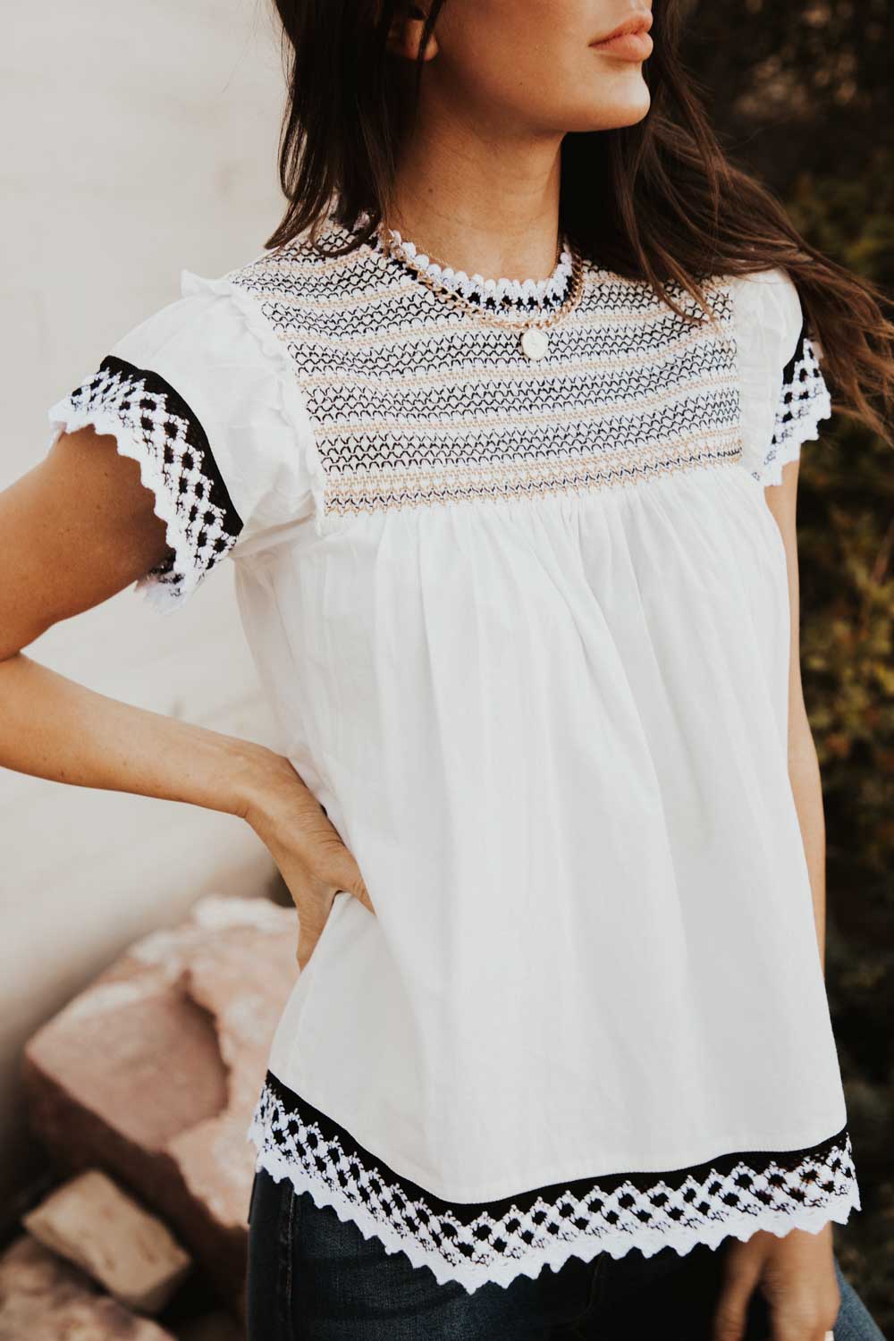 - Lace Detail on Neck, Sleeves, and Hem
