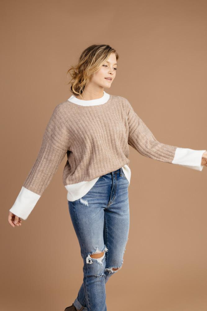 • Load image into Gallery viewer, Cozy Thoughts Color Block Sweater