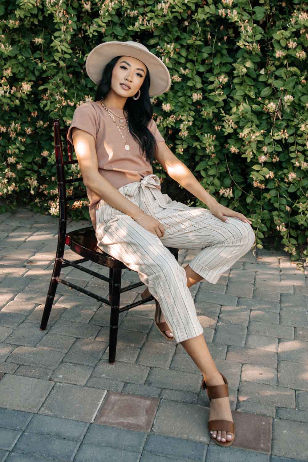 **Our online merchandise team measures each size by hand. For more specific information on the product, please feel free to live chat with a stylist.