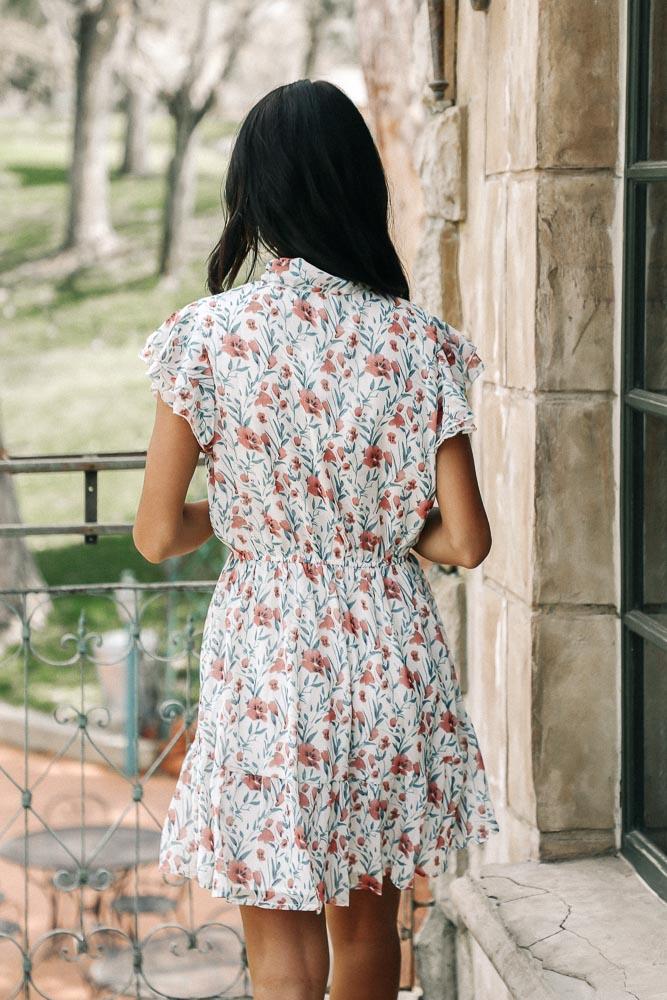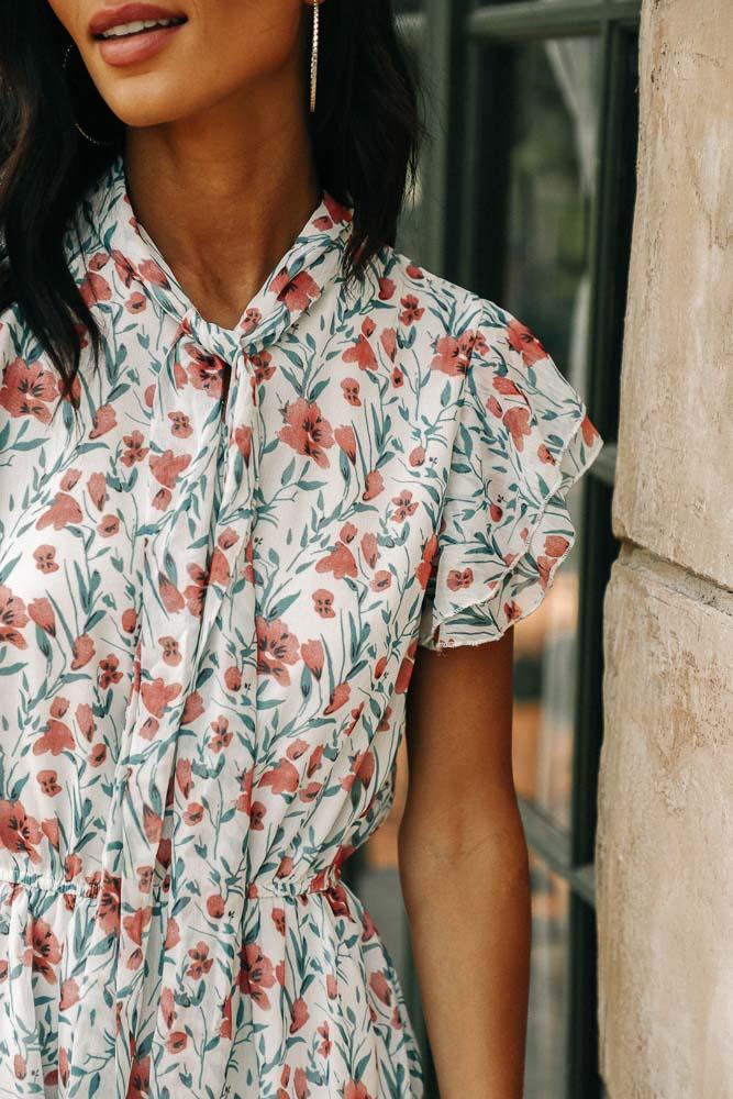 Fiona Tie Collar Floral Dress-FINAL SALE