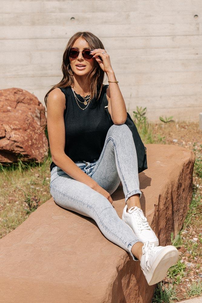**Our online merchandise team measures each size by hand. For more specific information on the product, please feel free to live chat with a stylist.