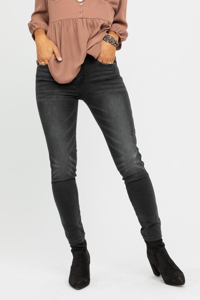 These pants are a washed out black color that makes edgy greys and blacks. They are perfect for that experimental outfit that you're dying to wear back to school or to that fun party coming up. We love pairing it with a striped tee or muted blouse and booties.