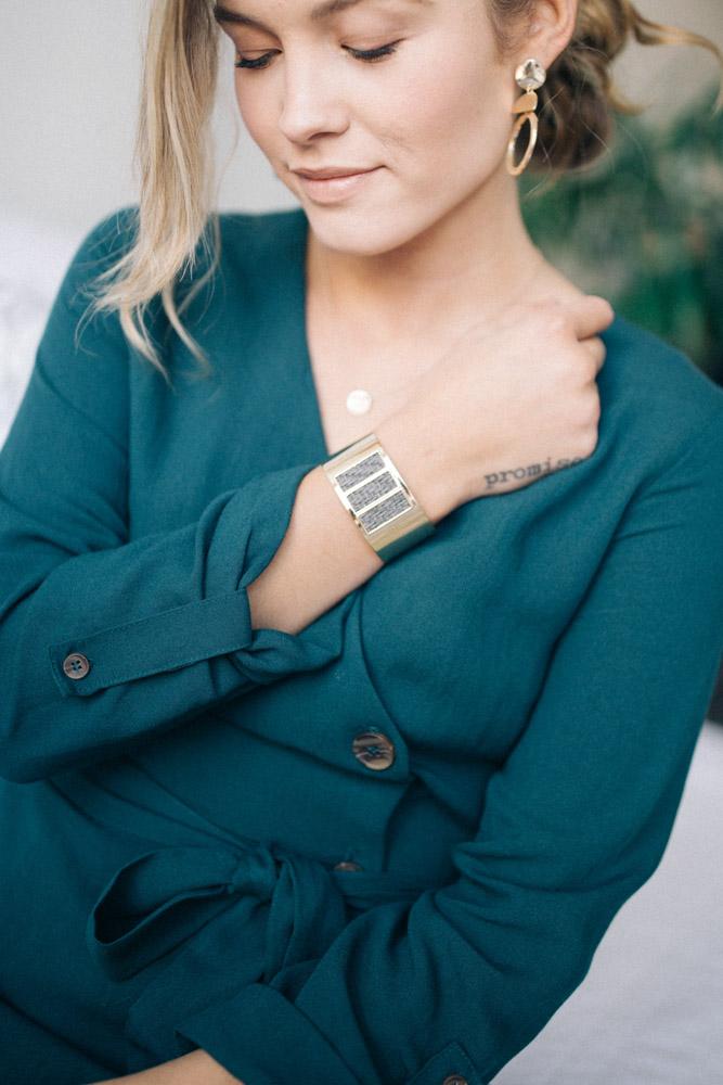 Make a statement with the Gemma Gold Bracelet! This bracelet will add a chic detail to any outfit. Features a gold cuff, and 3 slots of woven detail.