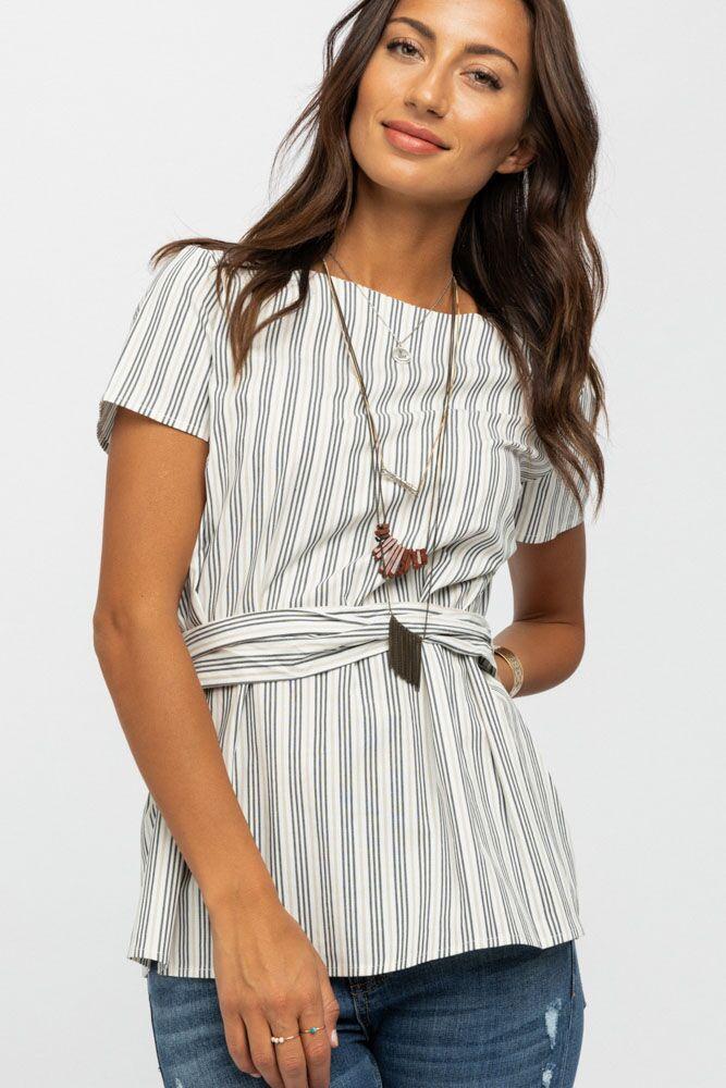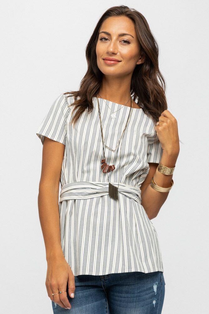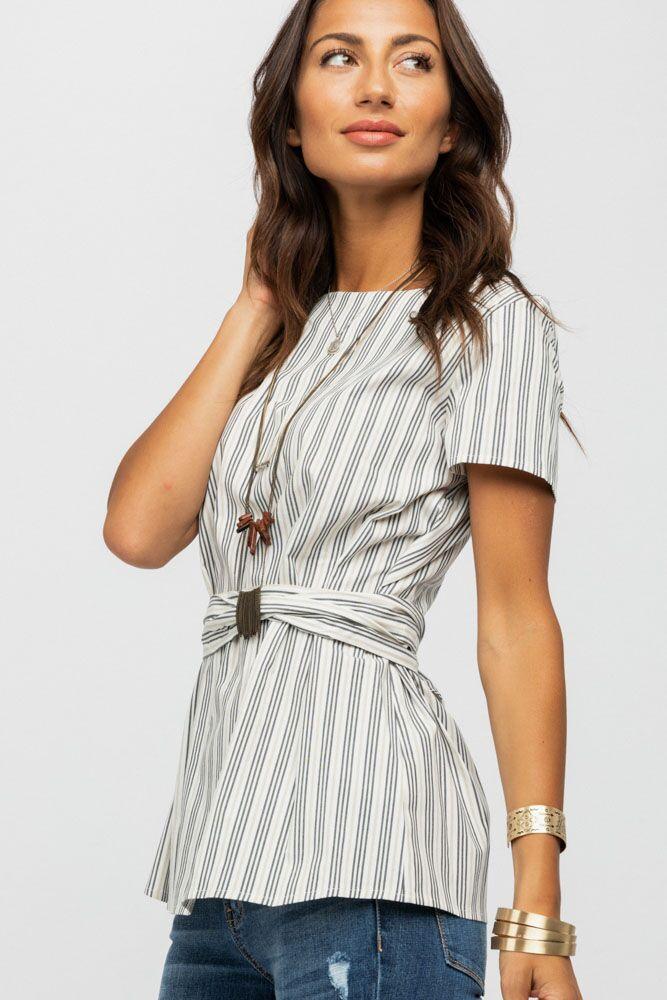Go dressy or casual with the Get Tied Up Stripe Top. This top is such a versatile and flattering piece that is calling to be in your closet! Featuring an adjustable tie at the waist, Black and white print, short sleeves and a keyhole button closure in the back.